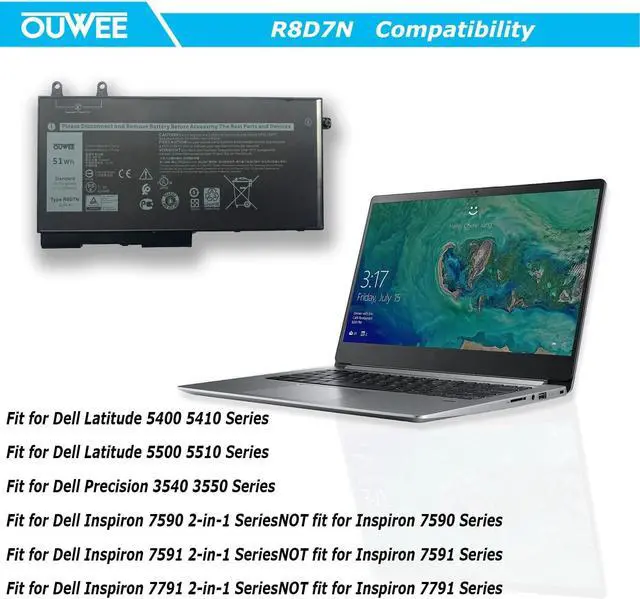 Replacement For LaptopDell Latitude 5400 5410 5500 5510 Precision 3540 3550 Inspiron 7590 2-in-1, Inspiron 7591 2-in-1, Inspiron 7791 2-in-1 Series, NOT fit for Inspiron 7590 7591 7791 Series.