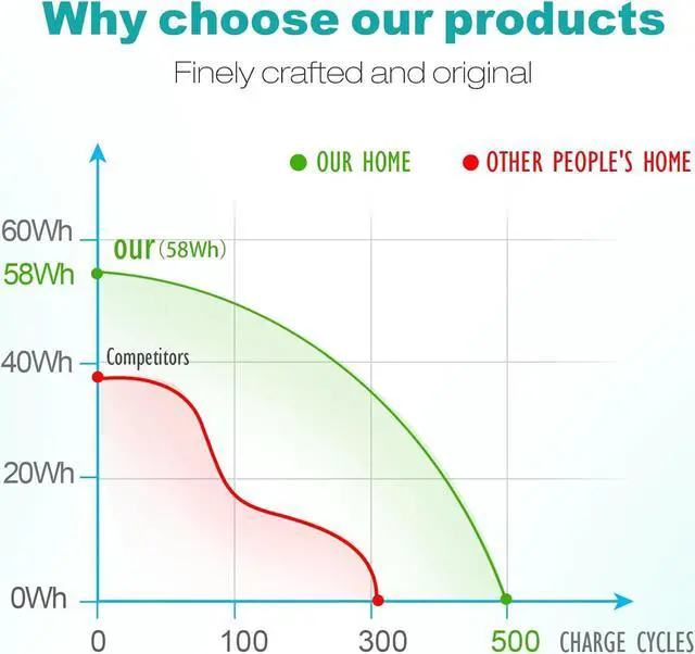Cells: 6-cell. grade A cells ensure fast charges and low power consumption; Built-in circuit protection ensures both safety and stability
