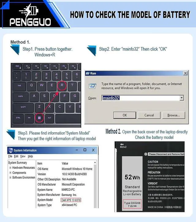 Series. (NOTE: 52Wh DXGH8 7.6V Battery is not for XPS 7390 2-in-1 Series Inspiron 7390 Series Inspiron 7391 Series)