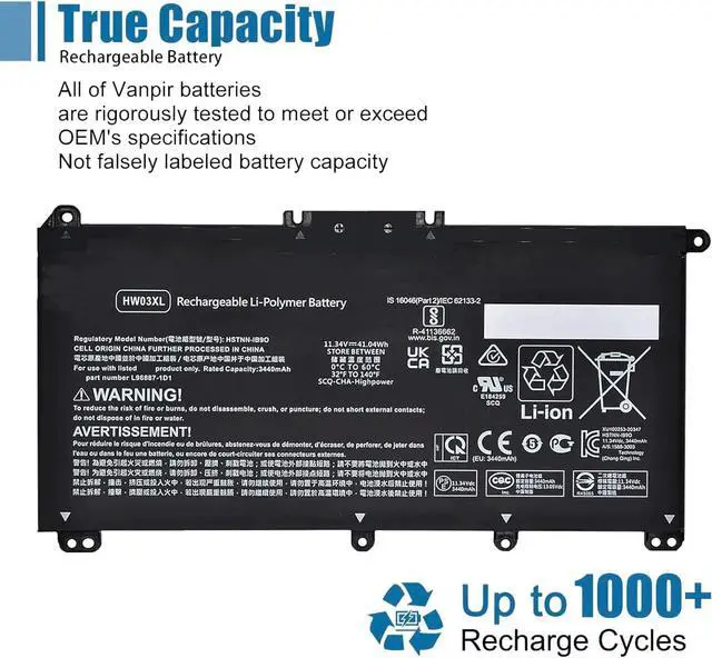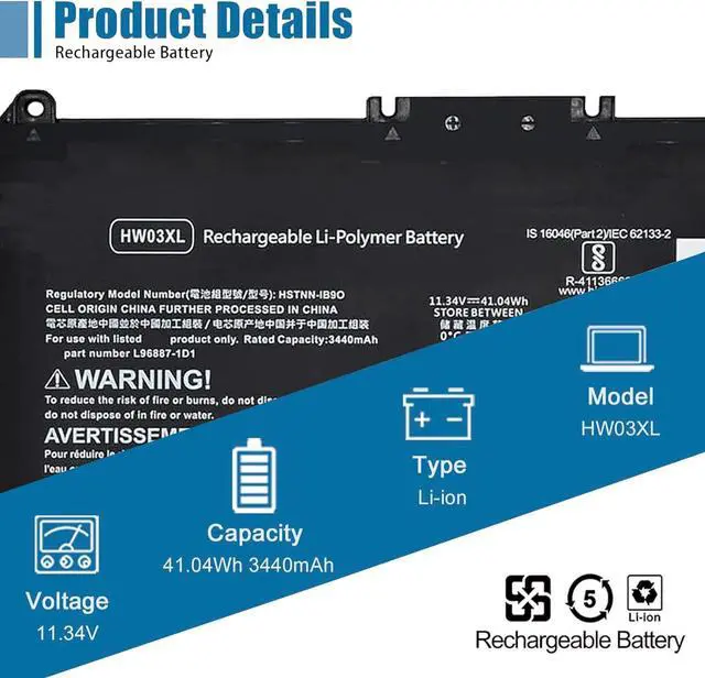 Replace Part NumberHW03XL / HWO3XL / HW03041XL / HSTNN-IB90 / HSTNN-IB9O / HSTNN-LB8U / HSTNN-LB8 / HSTNN-OB2A / HSTNN-DB9Y / L96887-1D1 / L96887-421 / L96887-AC1 / L96887-2B1 / L97300-005 / TPN-C131 / TPN-Q188 / TPN-190 / TPN-191