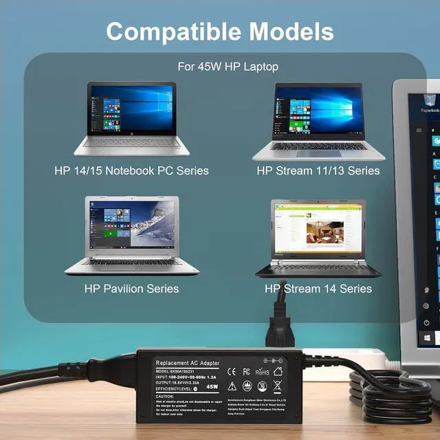 Replacement Laptop Charger HP PAVILION 15-F 15-DY: 15-f111dx 15-f009wm 15-f111dx 15-f211wm 15-f211nr 15-f224wm 15-f269nr 15-f337nr 15-f337wm 15-f367wm 15-f387wm 15-af093ng 15-dy2xxx 15-dy2093dx 15-dy1085nr 15t-dw300 15-ba009dx HP stream 14-v063us 14-cb164wm 14-dk1031dx 14-ds0003dx 15-r132wm 11-d020nr 11-d010nr 13-c010nr stream 11 13 14 Series; HP Elite Book folio 1040 G1; HP split 13 x2 13-g110dx 13-m010dx 13-m110dx; HP SPECTRA Ultra Book x2 13-3000 13t-3000 13t-h200; HP Pavilion x2