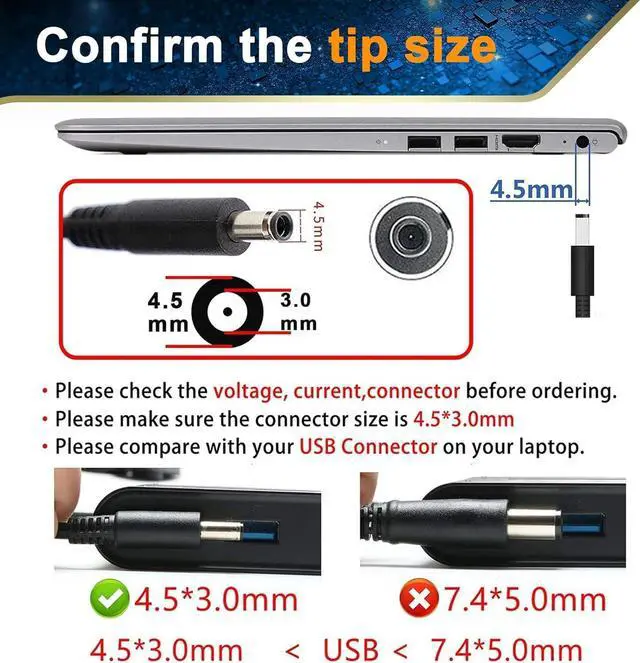 Output: 19.5V 3.34A 65W (compatible with 19.5V 2.31A 45W);