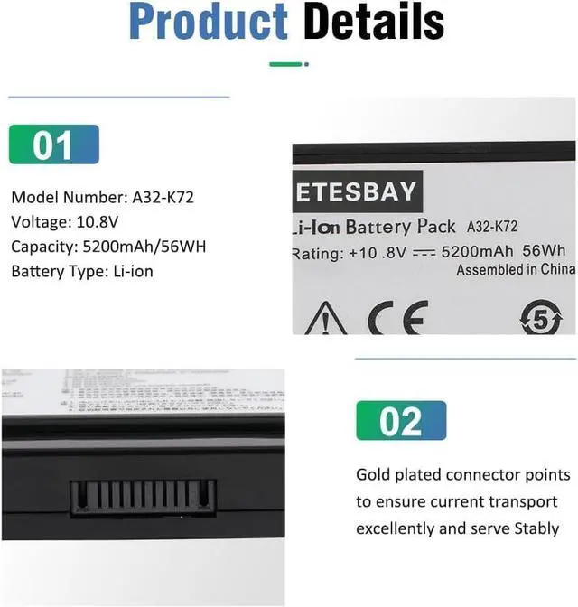 Compatible Laptop Models: ASUS A72D A72DR A72F A72J A72JK A72JR K72D K72DR K72DY K72F K72J K72JA K72JB K72JC K72JE K72JF N73 N71 K73 X77
