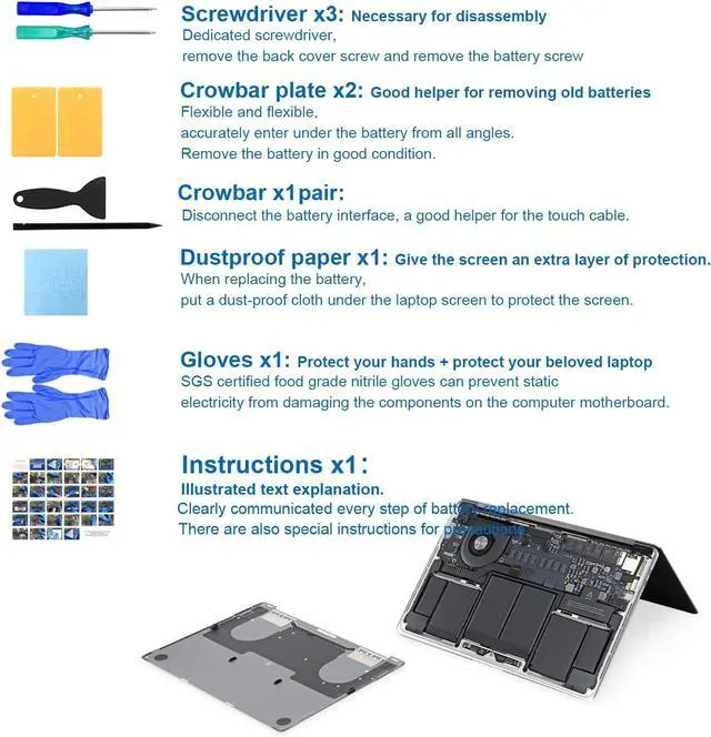 Package include: 1pcs - OEM laptop replacement battery for macbook air 13 inch, Professional installation tools (More details, Please check the last picture), 1pcs - Professional installation instructions