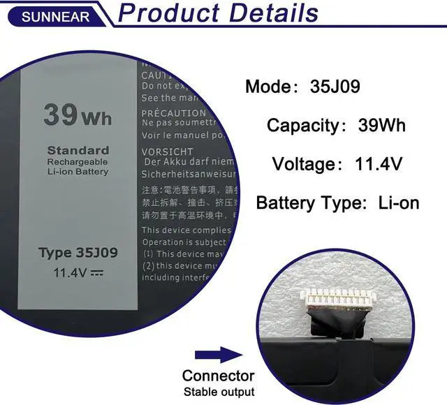 Compatible Part Number 35J09 JHT2H Y7HR3 4V5X2 HRGYV WY9MP XMV7T 009YYF