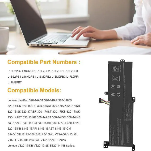 Compatible Laptop Models: Replacement for IdeaPad 320-14AST 320-14IAP 320-14IKB 320-14ISK 320-15ABR 320-15AST 320-15IAP 320-151ap 320-15IKB 320-151kb 320-15ISK 320-17ABR 320-17AST 320-17IKB 320-17ISK 130-14AST 330-15IKB 330-14AST 330-14IGM 330-14IKB 330-15AST 330-15IGM 330-17AST 330-17IKB 520-15IKB S145-14API S145-14IIL S145-15API S145-14IKB S145-15AST S145-15IGM S145-15IIL S145-15IKB S145-15IWL V15-ADA V15-IGL V15-IIL V15-IKB V15-IWL V145-15AST V320-17IKB V320-17ISK B320-14IKB Series.