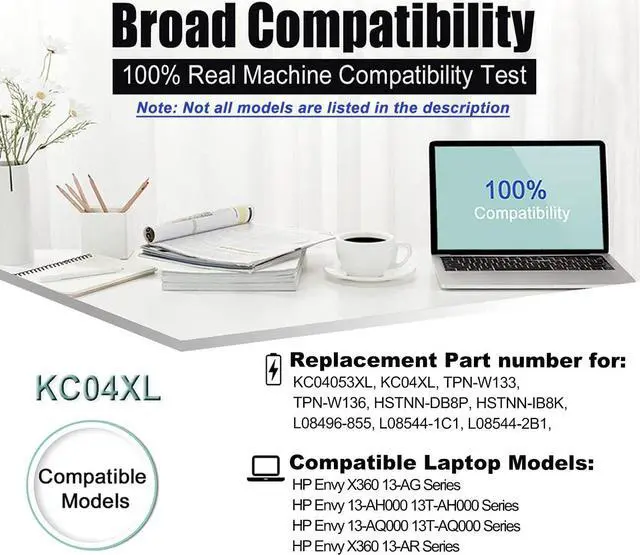 Replacement for Part NumberKC04XL L08496-855 KC04053XL HSTNN-DB8P HSTNN-IB8K L08544-1C1 L08544-2B1 TPN-W133 TPN-W136