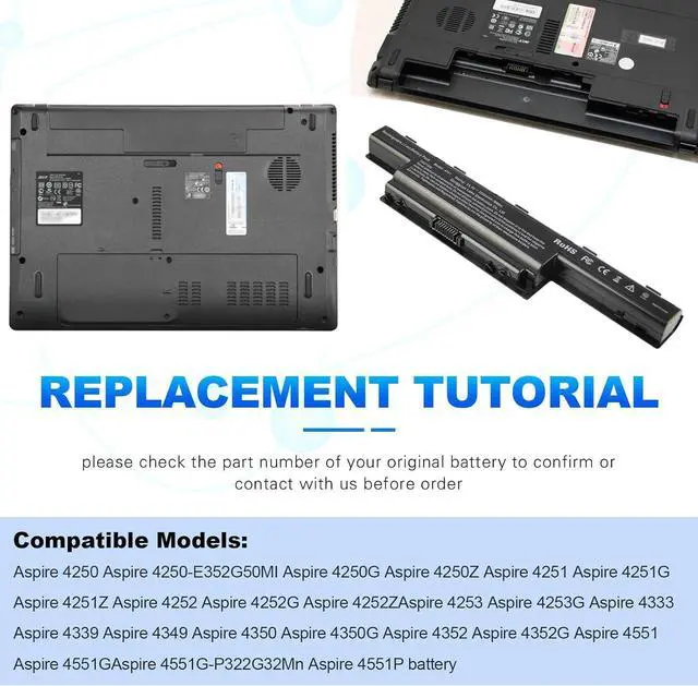 Compatible Models 1: Acer Aspire 4250 4253 4339 4349 4551 4551G 4738 4738Z 4739 4739Z 4743 4743Z 4741 4750 4750G 4755 4755G 4752 4752G 4752Z 4771 5251 5252 5253 5336 5349 5551 5551G 5552G 5560 5560G 5733 5741 5741G 5741Z 5742 5742G 5742Z 5742ZG 5750 5750G 5750Z 5750ZG 5755 5755G 5736 5736Z 7741G 7741Z-5731 7741Z-4643 7551G 7552G 7750Z