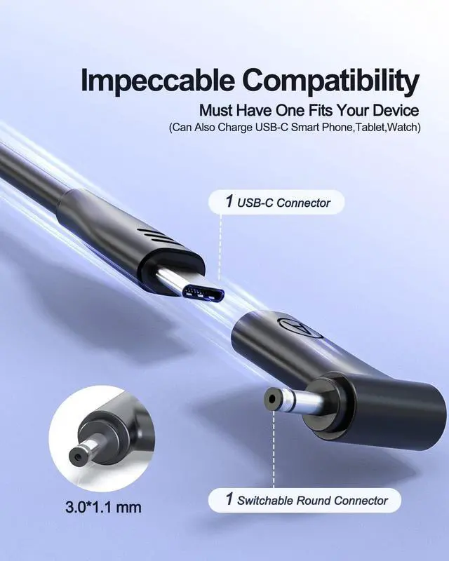 Universal Adapter, No Extra Purchase Needed Fit for all 65W-33W Samsung laptops with USB C connector, including Samsung Galaxy Book Pro/ Pro 360. Fit for Samsung Chromebook Pro, Chromebook Plus LTE V2, Chromebook 4 4+. Fit for Samsung Galaxy Flex Alpha 2 and Samsung Galaxy S23 S24 S25 smartphones. Fit for Samsung tablets, including Samsung Galaxy view and Samsung Galaxy Tab S9 [See the detailed compatibility list and more product features in the section below]