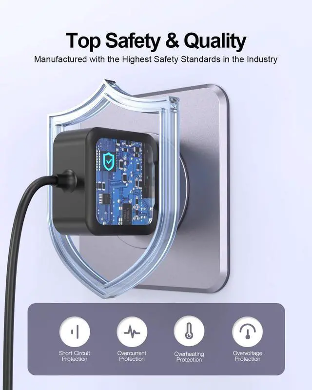 Certified Safety Trusted by UL Standards: This charger is built with premium materials and rigorously tested to meet UL safety standards, the industry' s highest benchmark. It features advanced protection against overcharging, overheating, and short circuits, ensuring safe and reliable power for your devices.