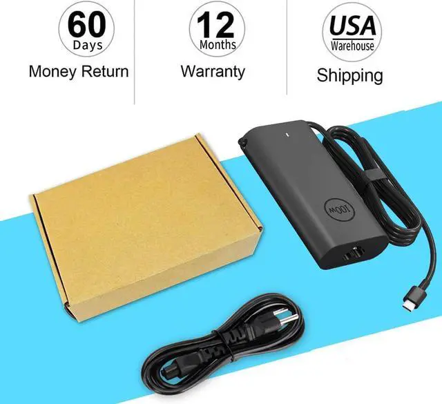 What You Get and Our Service1x 100W USB C Laptop Charger, 1x USB C Power Cord, We offer a 60-day return policy. For 12 months from the date of purchase, if the dell 100W usb c charger fails, we will replace it with a new one. For assistance with the Dell 100W Laptop Charger USB C, please visit our product details page