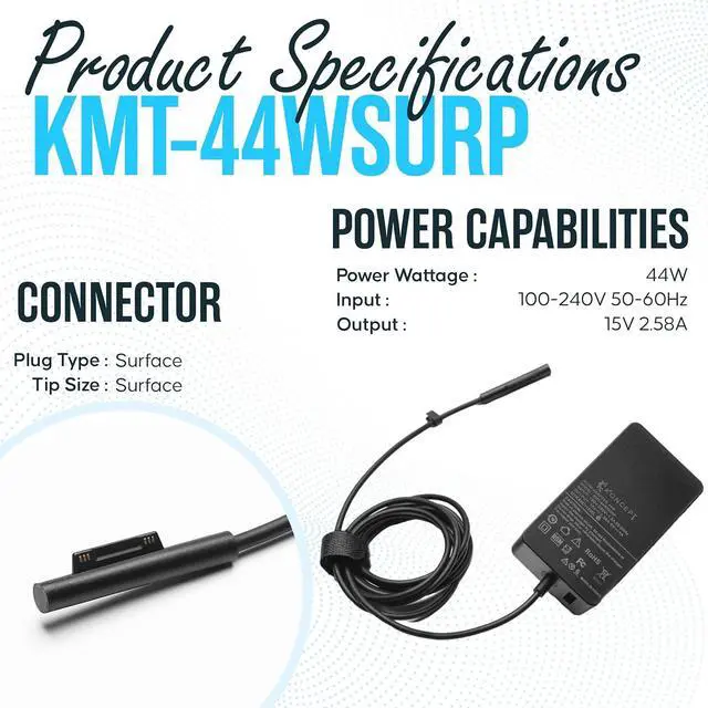 Reliable Power Output - With a 44W output, this adapter provides efficient charging for your Microsoft Surface devices, keeping you powered up throughout the day.