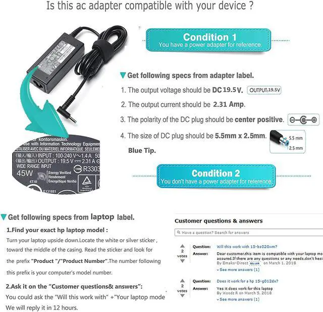 Output: 19.5V 2.31A; Connector: 4.5 mm* 3.0 mm