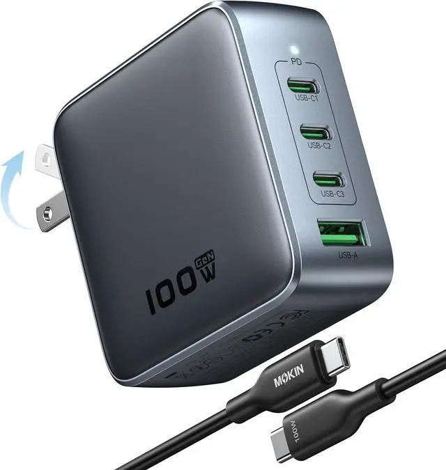Fast Charging: The USB C Charger Block with 3 USB-C ports and 1 USB-A port, connect a single USB C device to get maximum output 100W, charge your MacBook Pro 16' ' to 50% in 30 minutes