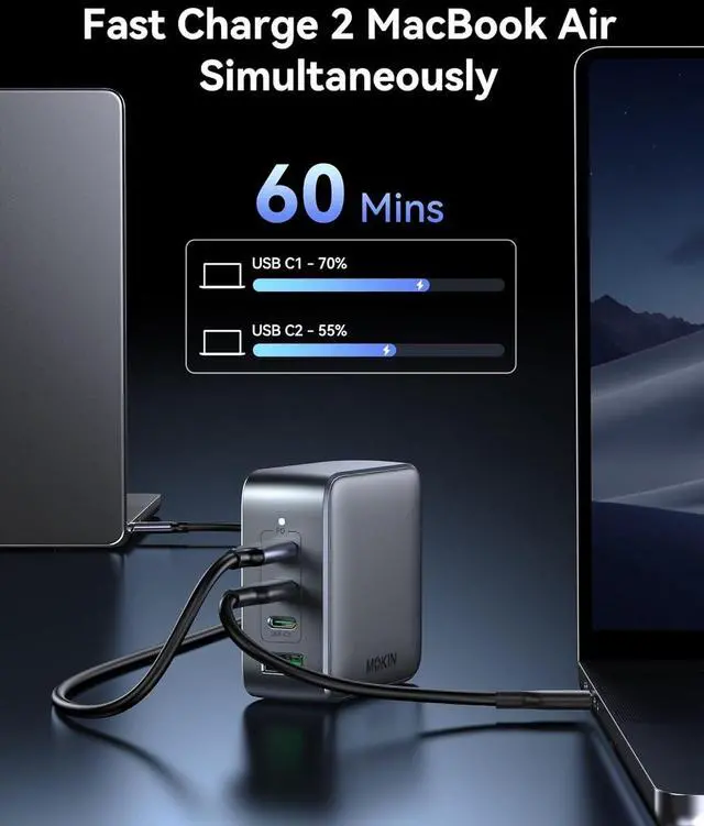 Upgraded GaN III Technology: GaN III technology enhances charger performance, achieving superior power density and efficiency compared to traditional silicon-based models. Yields compact, lightweight designs with minimized energy loss, optimized energy utilization, and decreased heat generation
