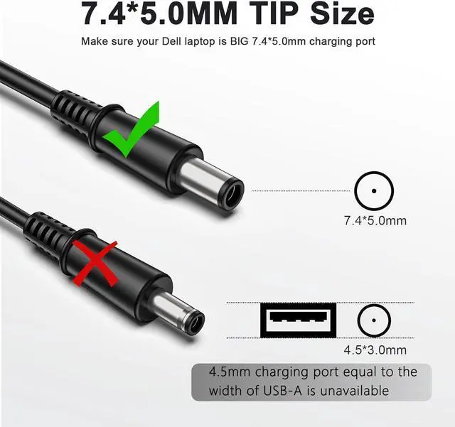 Tip: Some models of Dell laptops have two sizes of charging ports 7.4 mm & 4.5 mm, please confirm that 7.4 mm is what you need