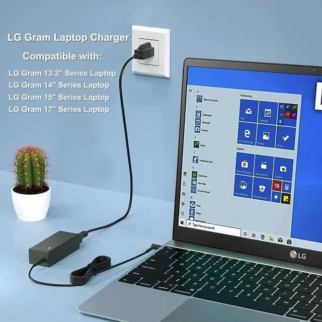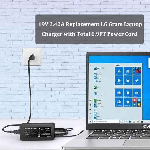 Output: 19V 65W (also for 45W 40W); compatible with LG Gram Laptop Charging cord length: 8.8FT total. The LG Gram Laptop Charger is sufficient for indoor use. Strain-eliminated tail cards for greater usability and resistance to flexing.