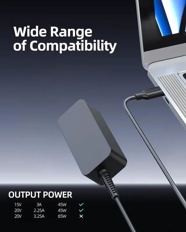 Max Output Power: 45W 20V 2.25A, Connector