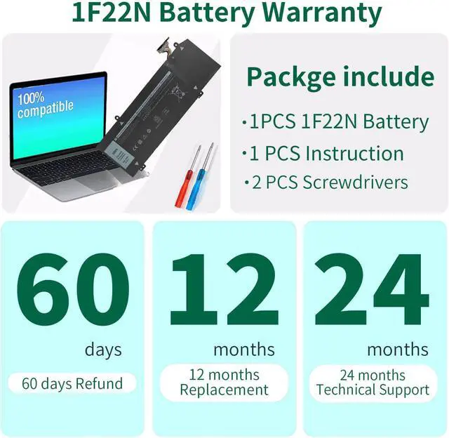1F22N battery for Dell G5 5590 Series: G5 15 5590, G5 5590-D2785W, G5 5590-D1765W, G5 5590-D2765B, G5 5590-D1865B, G5 5590-D2868W, G5 5590-D2745B, G5 5590-D1785W, G5 5590-D2865W, G5 5590-D1785B, G5 5590-D1865W, G5 5590-D2845W, G5 5590-D1765B, G5 15 5590-650GJ, G5 15 5590-FJJN8, G5 15 5590-P8RVW