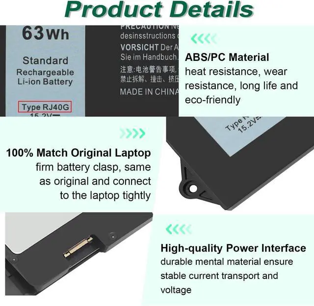 Compatible with Part Number: 63Wh RJ40G 01K2CF 075X16 0WK3F1 005R42