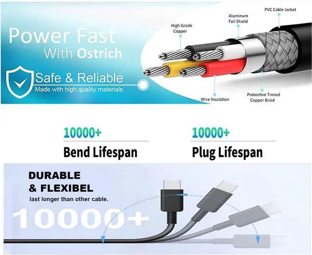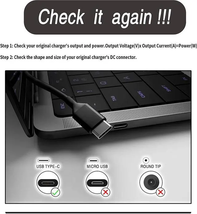45W USB-C laptop charger, power adapter, Fit for Lenovo, HP, Acer, Asus, Dell, Samsung and more.