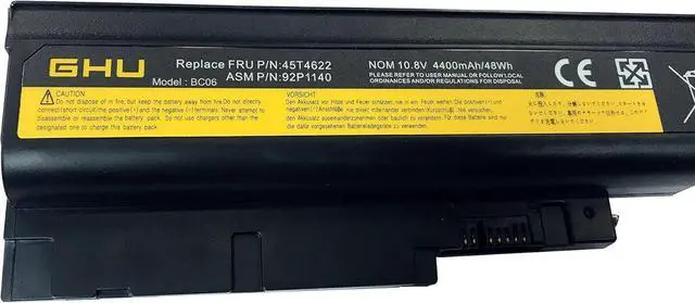 New GHU Battery 48 Wh Replacement Compatible With Lenovo ThinkPad T60 T500 W500 R60 40Y6799 40Y6797 92P1141 92P1133 92P1137 92P1138 42T4511 42T4504 42T4622 42T5232 43R9252. GHU T60 battery is fully compatible with t500 battery, w500 battery, and sl400 battery;