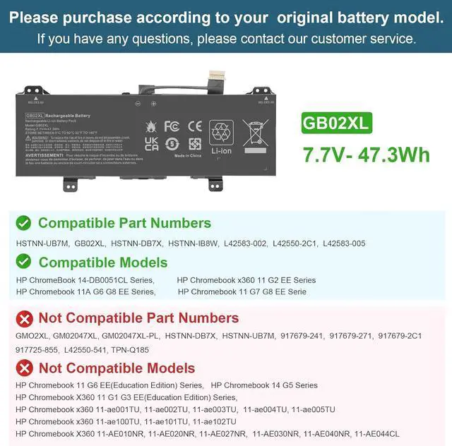 COMPATIBLE P/N: GB02XL GM02XL HSTNN-UB7M HSTNN-DB7X HSTNN-IB8W L42583-002 L42550-2C1 L42583-005 L42550-271 L42550-541 917679-271 917725-855