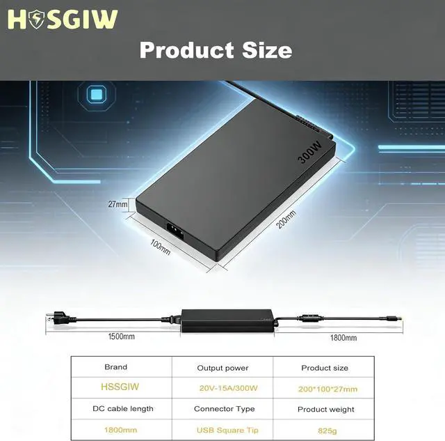 Power Specification: 300W Slim Tip Laptop Charger.