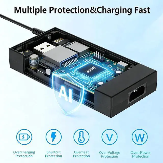 Multiple Protection: Built-in intelligent protection circuit chip accurate control voltage. Multiple protections provide PTC/Cyclic/Over-Charging/Over-Voltage//Over-Current/Short-Circuit/Over-Discharge/Overheating/overload Protection. surge protection and under voltage protection V-0 grade flame retardant safeguarding6.