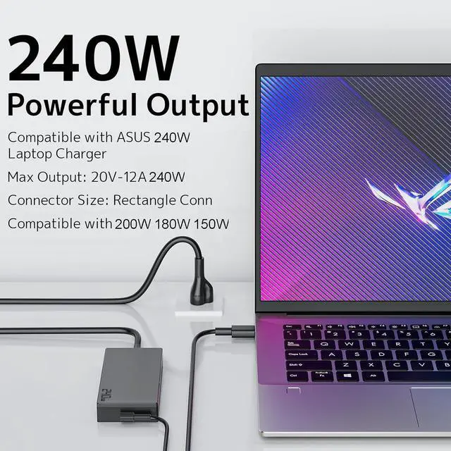 You Will Get: 1 x 240W Rectangle Conn Laptop Charger 1 x US AC Power Cord. Designed to be compact and portable innovative stacked architecture and an upgraded circuit layout weve made it smallerwithout compromising power. Ideal for use at home in the office or on the go. Quickly recharge your laptop and stay productive wherever you are