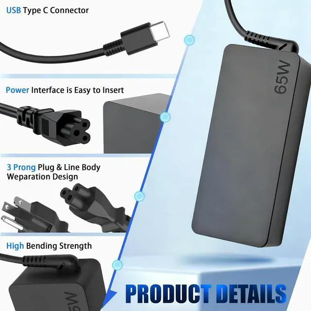 Widely Compability: Exclusively designed to fit for 65W/45W USB Type C laptops Compatible with ThinkPad IdeaPad Chromebook Yoga Flex Thinkbook laptops with USB C power connectorReplacement