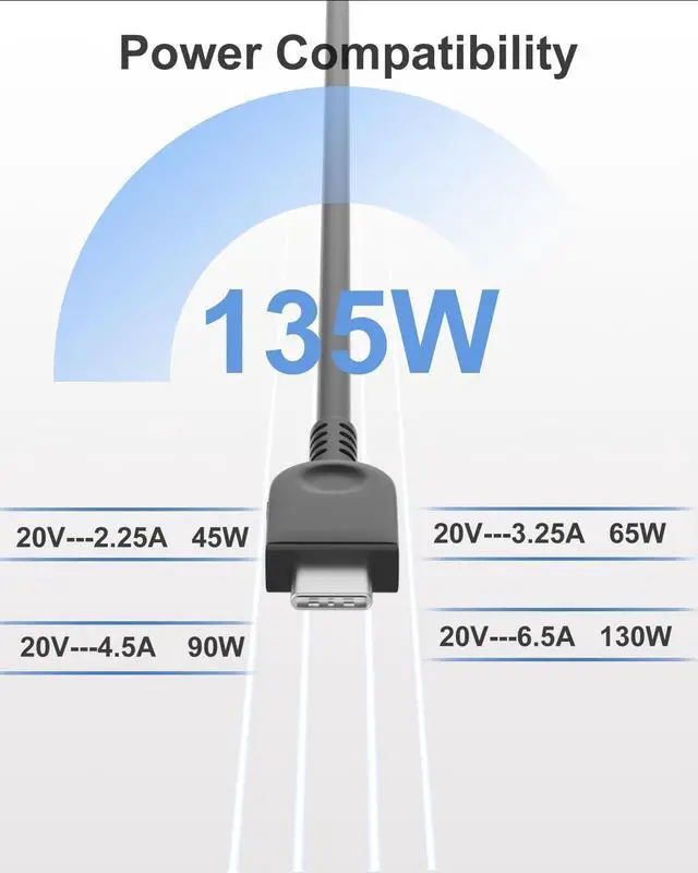 Protection: Over-Current Over-Voltage Short-Circuit Over-Temperature Over-Charge and Over-Load Protection. [High-Power 65W USB-C Output] Delivers robust 130W (20V/ 6.75A ) charging via USB-C. Versatile output profiles (5V/9V/12V/15V/20V) ensure compatibility and also supports lower wattage needs (135W 100W 95W). [Complete & Ready to Use] Get everything you need immediately: 1x 130W USB-C AC Charger + 1x Power Cord. No extra purchases required. [Our service] focusing on providing high -quality power products and excellent customer service If you encounter any problems with the product please contact us immediately. Prove that we are very important for quality rest assured to buy!