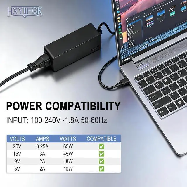 • 65W USB C Laptop Charger Compatible with Thinkpad T14 T15 Yoga Chromebook Computer Type C Fast Charging Power Supply Adapter Cord