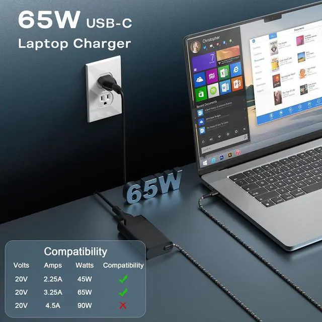 Power: 65w USB Type CWZXHU 65W USB C Laptop Charger compatible with Spectre X2 X360 13