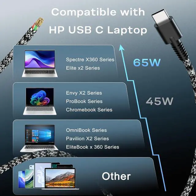 Series: 12-a001cy 12-a001dx 12-a008nr 12-a009nr 12-ab010nr 12-c012dx 12-c052nr 12-c053nr 13-ac023dx 13-ac033dx 13-ac013dx 13-ac063dx 13-ae010ca 13-ae011dx 13-ae012dx 13-ae013dx 13-ae014dx 13-ae015dx 13-aw0003dx 13-ap0013dx Elite X2WZXHU 65W Type C Computer Charger compatible with Envy X360 X 2: 12 -E000 13-G000 12-e011nr 12-e068ms 12-e091ms 12-g018nr