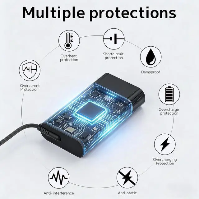 Max Output Modes: 5V~3A 9V~3A 12V~5A 15V~ 4.33A 20V~ 3.25A (65W Max). The charger automatically matches the required mode based on connected devices to ensure safe charging.