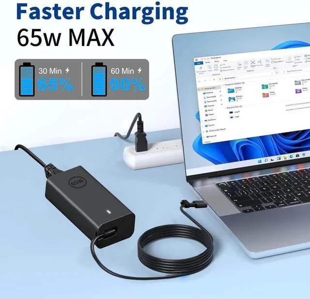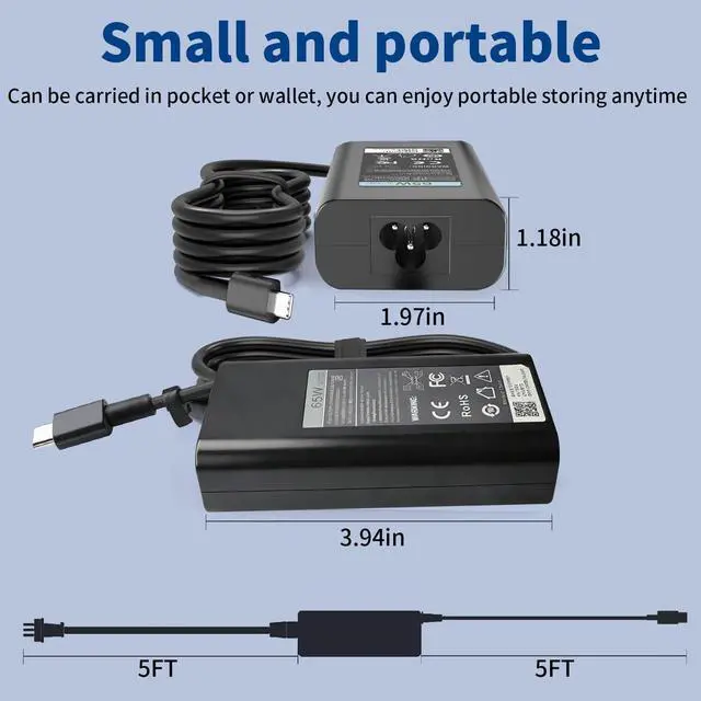 65W USB C Laptop Charger for - SpecificationsCompatible with 65W USB-C Laptop Charger for XPS and Latitude 5000 - Power Cord Included.