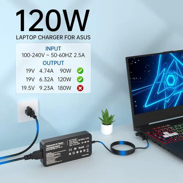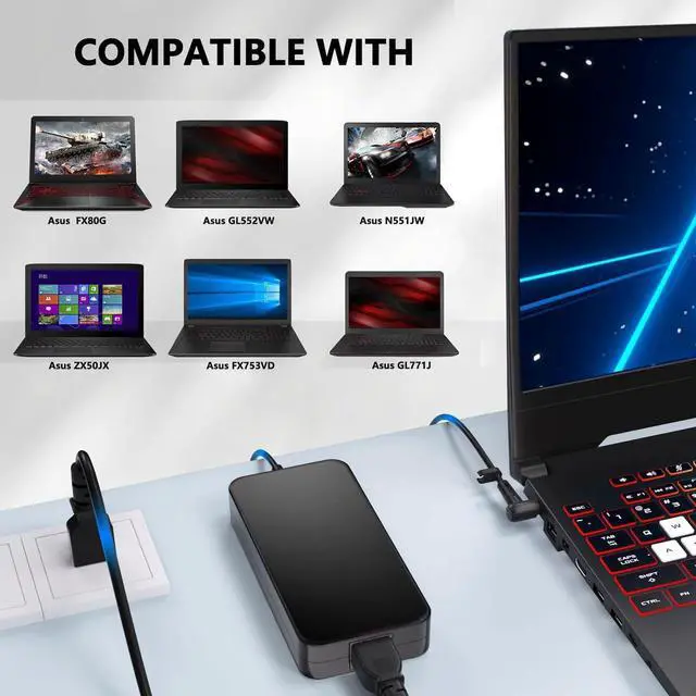 Charger for Laptop: Compatible with ROG Strix GL552 GL552V GL552VL GL552VX GL552VW GL552JX GL552J GL552VW-DH71 GL552VX; GL551J GL551JW GL551JM-DH71 GL771JM GL551JW-DS74; GL553 GL553V GL553VE GL553VD GL553VW GL553VD-DS71; GL752VW GL752VL GL752V GL752 GL752VW-DH71 GL752VW-DH74 GL752VW-GS71; GL502VT GL502V GL502 GL502VT-DS71 UX510UW N56VM-SB71 N56VZ-XS71 N56JR-DS71P/N Compatible with