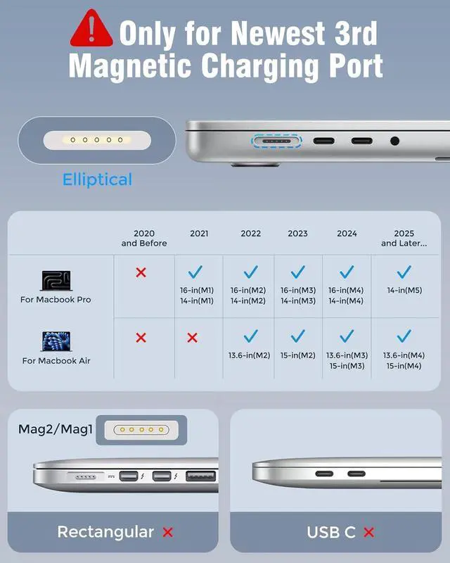 Port MacBook: widely compatible with MacBook Pro 14 16 inch (M5 2025) (M4 2024) (M3 2023) (M2 2022) (M1 2021); MacBook Air 13 inch (M4 2025) (M3 2024) (M2 2022); MacBook Air 15 inch (M4 2025) (M3 2024) (M2 2023); model a2681 a2941 a3113 a2442 a2918 a2992 a2779 a3401 a2452 a2458 a2485 a2780 a3240 a2581... Original Quality Helps to Keep MacBook