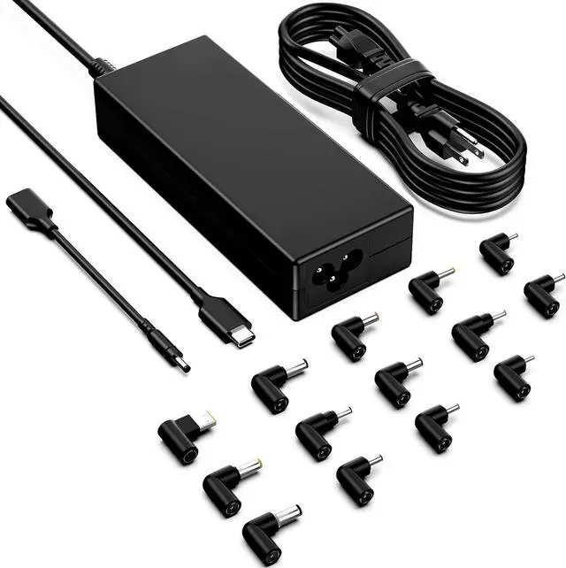 Output: 20V/5A (100W Max). Backward-compatible with 65W/90W/45W laptops. 15-in-1 Connector Kit Includes 15 interchangeable tips Compatible with Compatible with Compatible with Compatible with Compatible with Compatible with Toshiba Compatible with Compatible with LG Compatible with IBM Compatible with Gateway& more. Premium Safety & Durability Built-in over-voltage/over-current/overheat protection. Fast & Efficient Charging USB-C PD 3.0 delivers full-speed 100W power to charge most Ultrabooks & gaming laptops in minimal time. Ideal for travel office or home use.