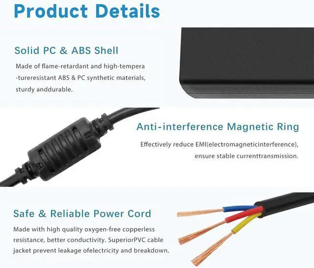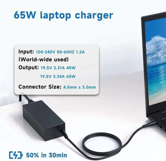 Black Tip] Output: 19.5V 3.34A 65W (Backward compatible with 45W 19.5V 2.31A ).