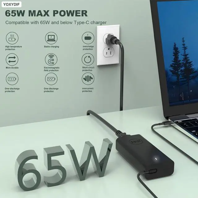 Power: 65W (Compatible with 45W Laptop Charger