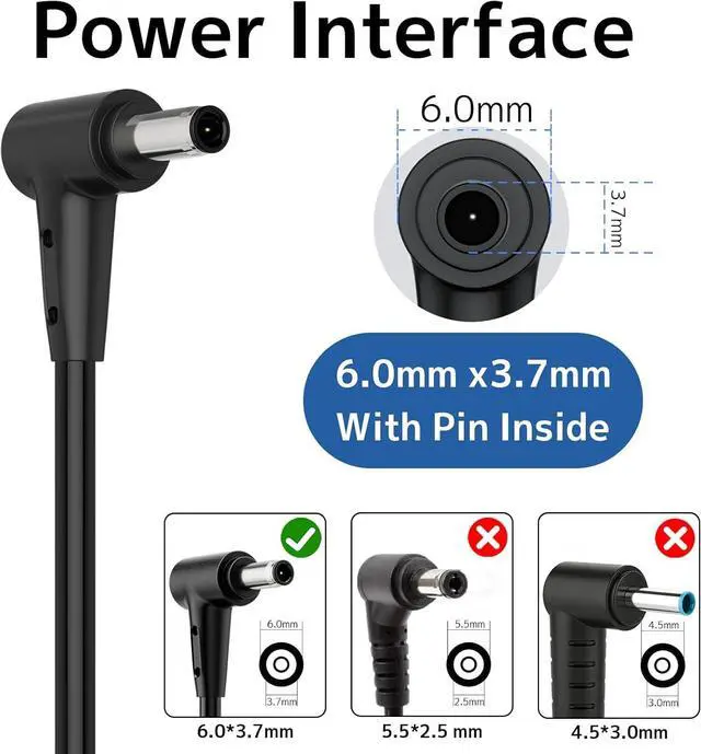 Connector Type: 6.0 * 3.7 mm round tip. (Do not use laptops requiring more than 200W) 2Compatible with