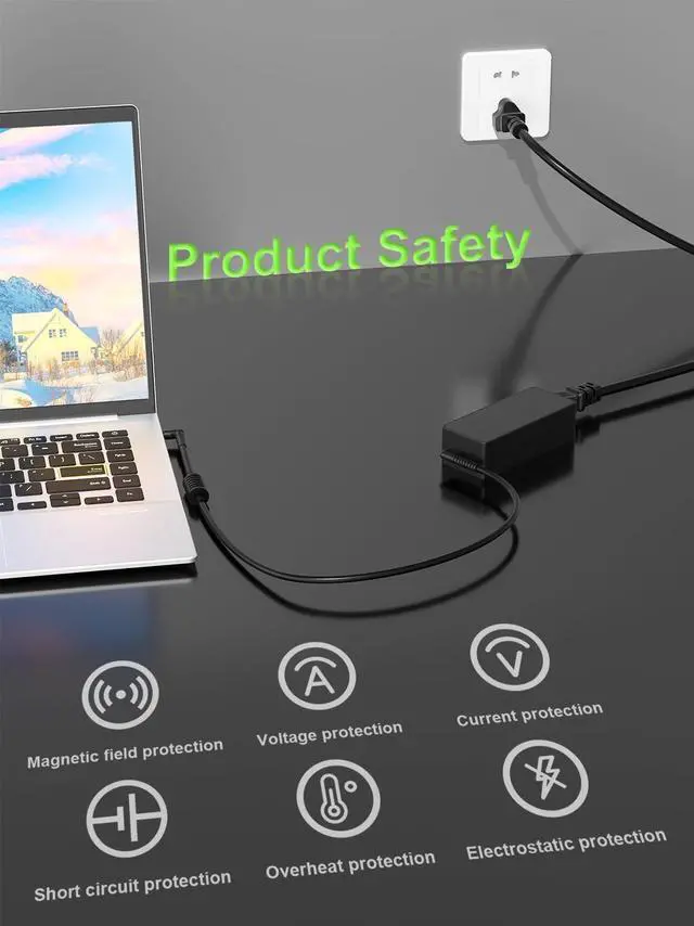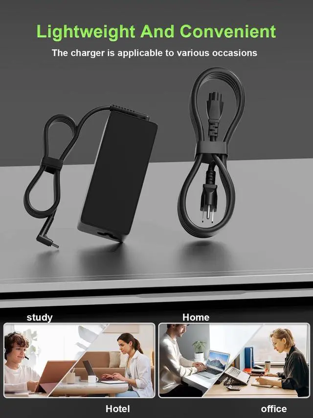 The slim compact profile slides easily into carry-on luggage while the extra-long 8.2 ft ( 2.5 m) total reachincluding a detachable AC cordensures you can stay powered even when the wall outlet is far from your desk or airport seat. [Safety with Overheat Protection]; Safety is our priority. Unlike standard chargers this unit features a built-in smart chip and LBS (Load Break Switch) that provides multi-layer protection against overcharging overcurrent and short circuits. The flame-retardant high-temperature resistant materials prevent overheating during intense use. The intelligent heat management system automatically regulates power based on battery status keeping your home and family secure while extending your laptops battery life.