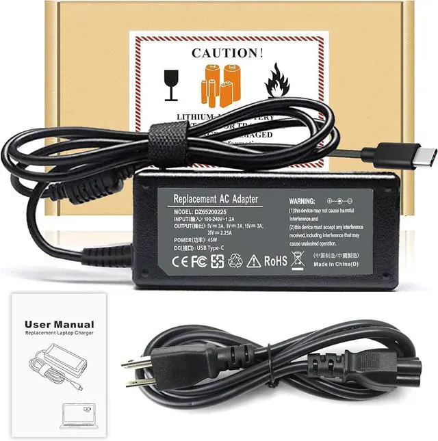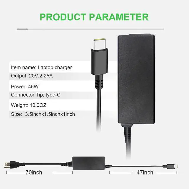 Compatible models: for Yoga C740 730 730-13IKB 720 720-13IKB C930 C940 S730 730S ThinkPad ThinkPad T480 T480s T490 T490s T495s T580 T580s T590 T495S L380 L390 L480 L490 E14 E15 E480 E485 E490 USB C Laptop Charger Chromebook 100e 300e 500e Laptop; for Chromebook x360 Charger 11 14 15 Series 15-de0518wm 14-ca02inr 14-ca051wm 14a-na0023cl 14b-ca0013dx 14c-ca0053dx 11a-nb0013dx Laptop; for XPS 12 9250 XPS 13 9360 9365 9370 9380 9333 Latitude 7275 7370 5175 5285 7390 2in1 5290 2in1 LA45NM150/0HDCY5/04RYWW Laptop; Compatible with all usb c type c machineFit for ADLX65YLC2A ADLX65YCC3A ADLX65YLC3A ADLX65YDC3D ADLX65YCC3D ADLX65YLC3D ADLX65YAC3A ADLX65YCC2A ADLX65YAC2A ADLX45YDC2A ADLX45UDCU2A ADLX45YCC2A ADLX45YCC3D ADLX45YLC3D ADLX45YDC3DCompatible models: for Chromebook CB315 R721T R751T CB515 CB5-312T C732 C933 C771 C721 C732T-C8VY C733 R752TN CB315-3H-C2C3 C851 N17Q8 CB311 CB314 CB514 CB713 CB714 CB715 CB5-312 C771T C732T; for Chromebook 4 Plus + XE310XBA XE350XBA W16-030N1A PA-1300-87; for Chromebook ZenBook Transformer ExpertBook C302C C213 C214 C436 C523 ADP-45EW B UX390UA UX490 UX325 UX393 UX371 B9450FA B9450CEA T302100% New from Manufacturer Overcharger and Discharger Circuit Protection CE-/FCC-/RoHS-Certified for safety30 Days no-questions-asked full money back and 12 Months Exchange Guarantee. (The return window will be closed a month after you received the the product. CONTACT US we will make it up and solve it more efficiently).