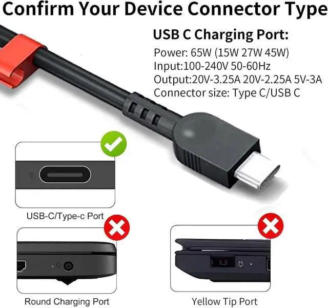 65W USB C Laptop Charger Compatible with Thinkpad/Yoga/Chromebook ADLX65YDC2A Laptop Charger65W USB C Laptop Charger Compatible with ThinkPad X1 Carbon 5th 6th 7th Generation X1 Yoga 2nd 3rd 4th Gen X1 Tablet 2nd 3rd gen; ThinkPad -X1 Carbon 6th Generation ThinkPad 2nd gen-X1 Yoga ThinkPad 2nd gen-X1 Yoga 3rd Generation ThinkPad 2nd gen-X270 ThinkPad 2nd gen-X280 ThinkPad 2nd gen-X380 Yoga ThinkPad X1 Tablet-ThinkPad X1 Tablet Gen 3Flawless Compatibility --- Exclusively designed to fit ALL laptops (both 65W & 45W models with USB C connectors) such as ThinkPad IdeaPad Chromebook Yoga Flex and ThinkBook laptops that feature a