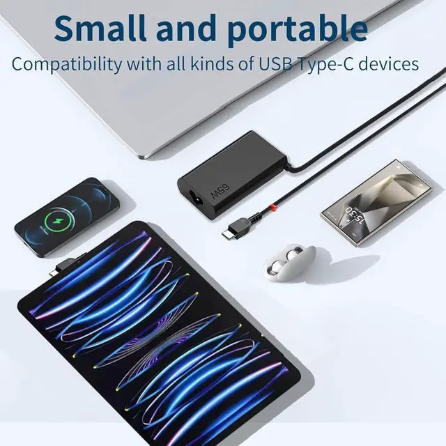 USB C power connectorFeatures: The 65W USB C Laptop Charger is an upgraded version. It is 40% smaller in size and lighter in weight compared to the previous model the 65W Laptop Charger. This charger is equipped with internal protections against overheating overvoltage overcurrent and short circuits. Whether you're traveling or at school it serves as a safe and reliable companion for your laptop. 65W USB C Laptop