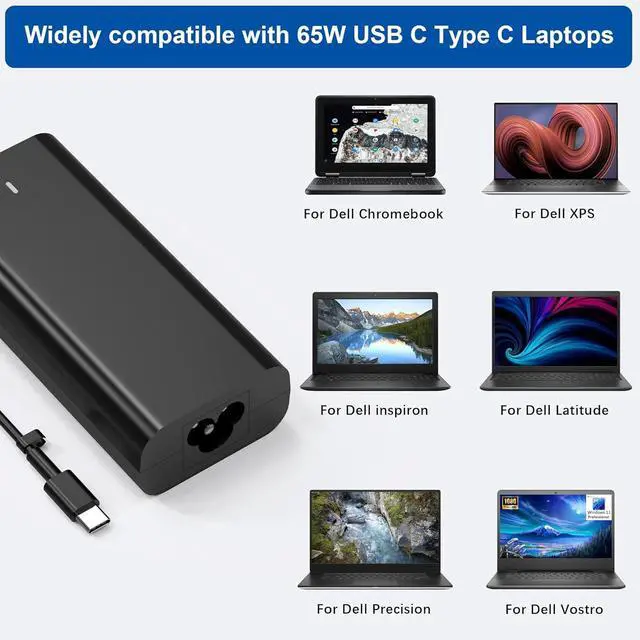 Connector Size: USB-C / Type-C(PD 3.0 Charger)USB-C charger Compatible with XPS 12 9250 9Q23 9Q33 L221X; XPS 13 9300 9305 9310 9360 9365 2-in-1 9370 9380 9350 7390 9250 7390 2-in-1 9365 2-in-1. Chromebook 11 3000 3110 Chromebook 11 3000 3110 2-in-1 Chromebook 11 3100 Chromebook 11 3100 2-In-1 Chromebook 11 5190 Chromebook 11 5190 2-In-1 Chromebook 14 3400 Power AdapterType-C charger Compatible with Latitude 5290 5290 2in1 5480 5490 5491 5495 5580 5590 5591 7280 7290 7380 7390 7410 7420 7480 7490 5420 5520 7400 E5420 5320 7320 7370 5289