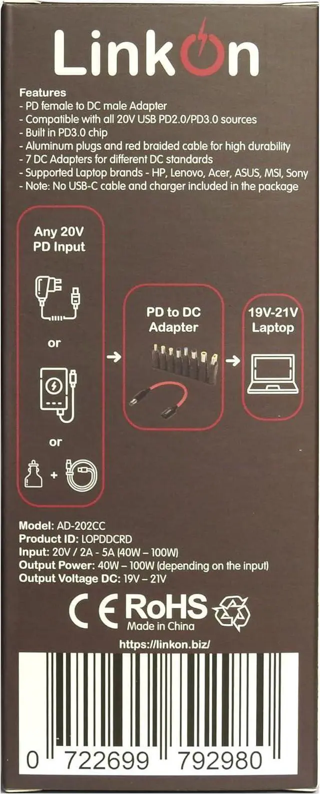 UNIVERSAL LAPTOP POWER Throw away your old dusty and heavy laptop power supply. Our adapter will turn any Power Delivery charging source into charger for your mobile computer. The 8 included DC plugs make it compatible with HP, Lenovo, ASUS, Acer, MSI, Sony, Dell and more.