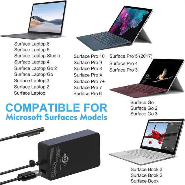 Designed to be compatible for surface book 3, surface book 2, surface book, surface laptop 6, surface pro 10, surface laptop 5, surface laptop Go 2, surface pro 9, surface pro 7+, surface laptop studio, surface laptop 4, surface laptop go, surface laptop 3, surface laptop 2, surface laptop, surface pro 8, surface go 3, surface pro x, surface pro 7, surface go 2, surface pro 6, surface go, surface pro 5 (2017), surface pro 4, surface pro 3.